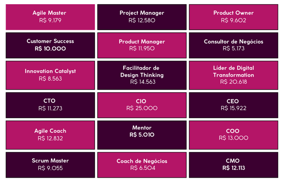 Área de tecnologias, startups, bancos, grandes indústrias, inovação, consultorias, customer success e gestão.