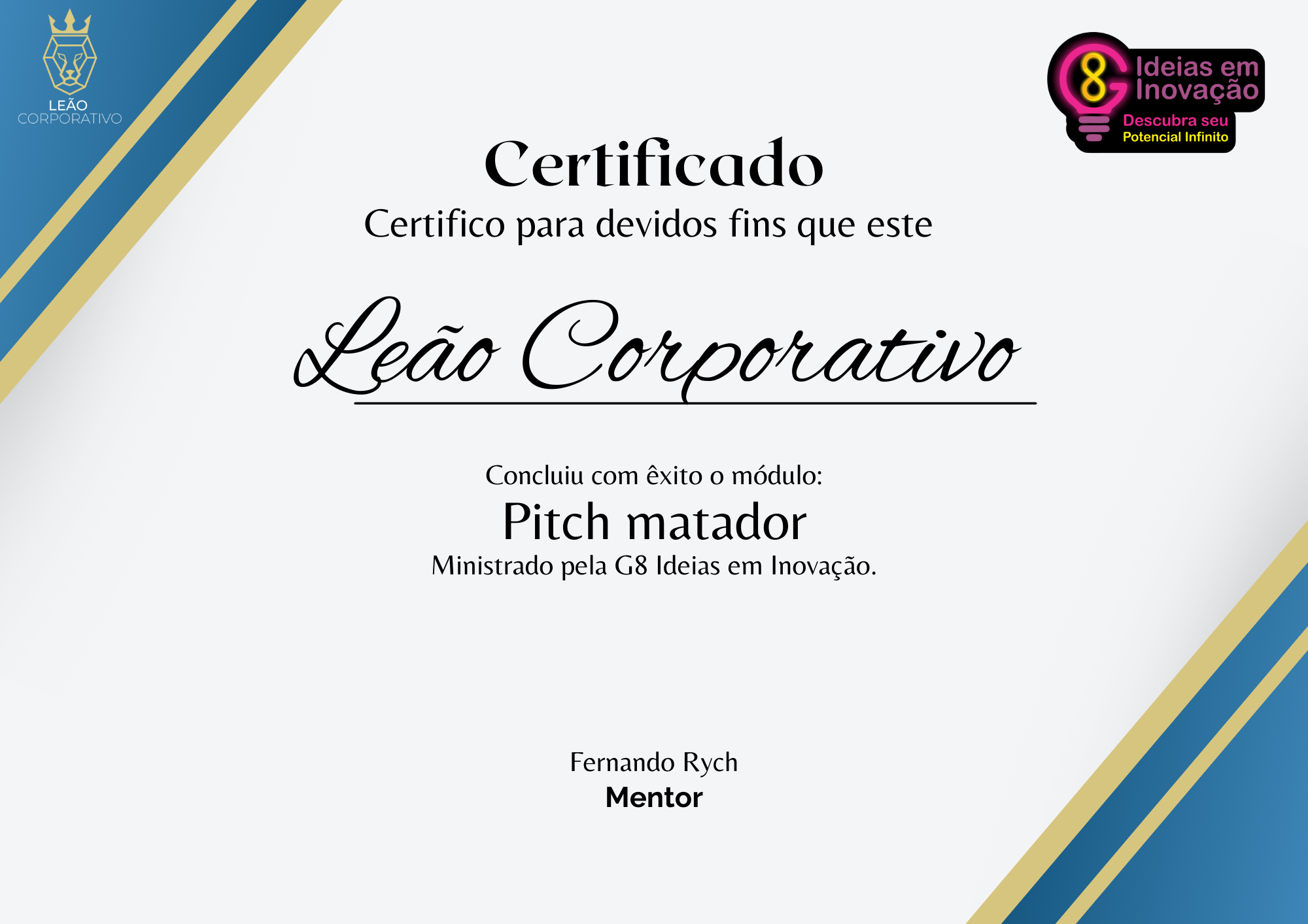 “É uma formação muito completa! Me ensinou coisas que fizeram total diferença no meu desempenho profissional. Foi fácil de aprender, pois o Fernando explica de forma clara e com exemplos que se encaixam no dia-a-dia. Super indico!”