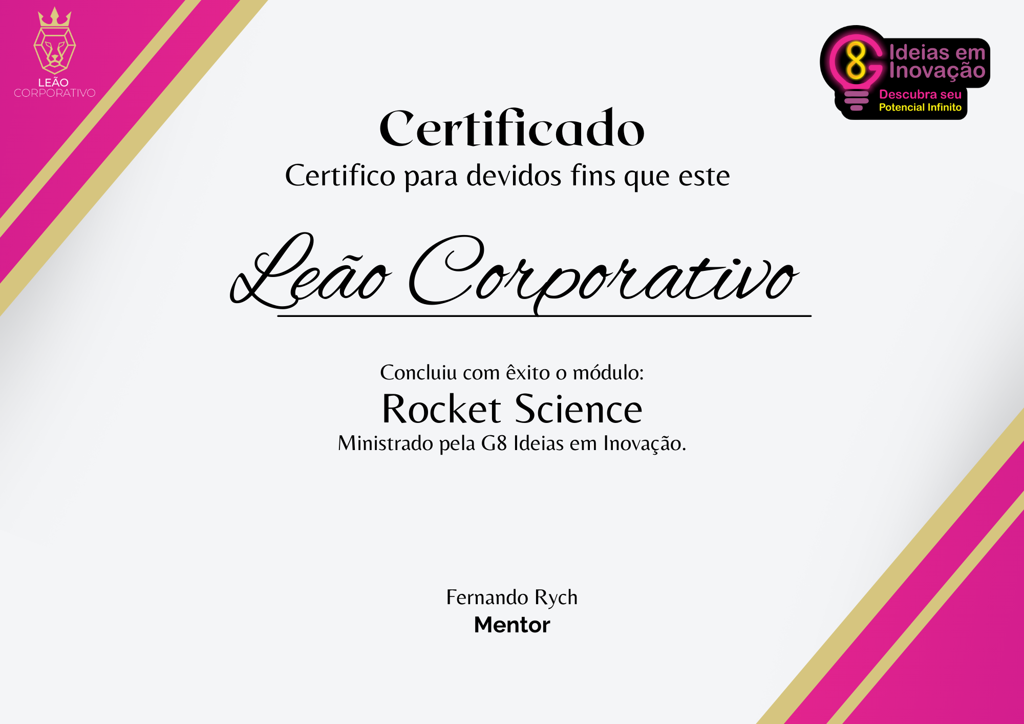 Certificado de conclusão emitido por um dos mais renomados nomes da Tecnologia, Inovação e Startups do Brasil.